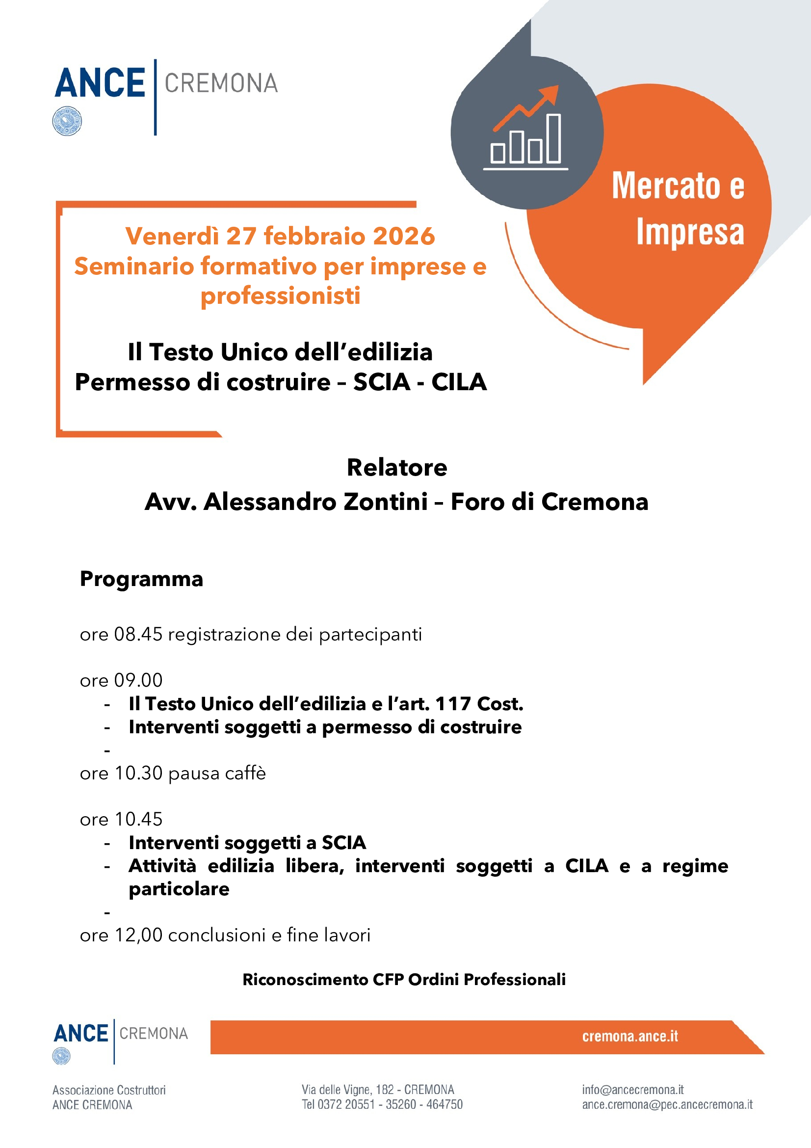 Ance Cremona organizza un seminario formativo gratuito per imprese e professionisti a cura dell’ Avv. Alessandro Zontini del Foro di Cremona sulle seguenti tematiche: